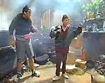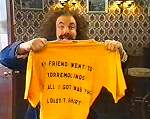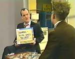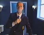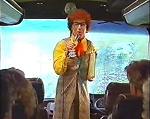| Calum Gilhooley Played by Moray Hunter. This was hell of an annoying character but he was put into some interesting situations. He always wore a blue anorak and carried a carrier bag (for balance), He even wore the anorak while on the operating theatre bed! His main trait was that he used to over-describe things in his life to the point where at one point someone sold him his house to him for £10 just to get away from him. Calum loves Hats, Honda motorbikes and shopping trolleys. He often gets actors names and film titles mixed up. His long suffering friend is called John, who seems unable to shake him off despite trying his best to get shot of him, even at one point running to the end of the world to get away. One sketch featured Michael Grade (controller of Channel 4 at the time) and some of his colleagues being shown around the set. This character came about when three of the cast shared a flat in Polwarth, Edinburgh in the 80's. someone used to visit who liked motorbikes and never took of his anorak, and so Calum was born! |