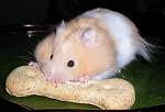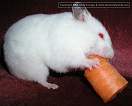 Description : Nibbler with yogurt treat Image Reference No. : AA-141204HAMSTERS-03 Date photo taken : 14th December 2004 Other Information : This is Nibbler the Hamster (female) eating a yogurt flavoured 'Hamster treat' button. |